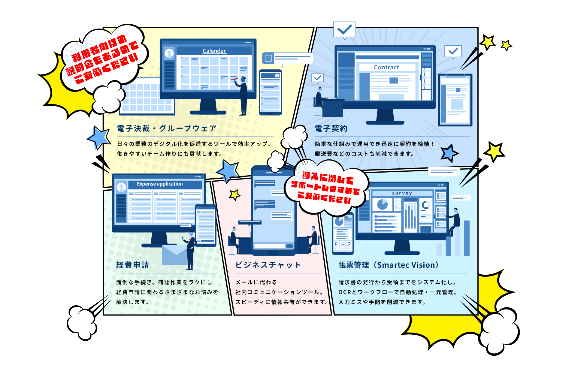 経費申請、ビジネスチャットの他、導入支援コンサルティングなどの導入サポートもIT導入補助金の補助対象となります。